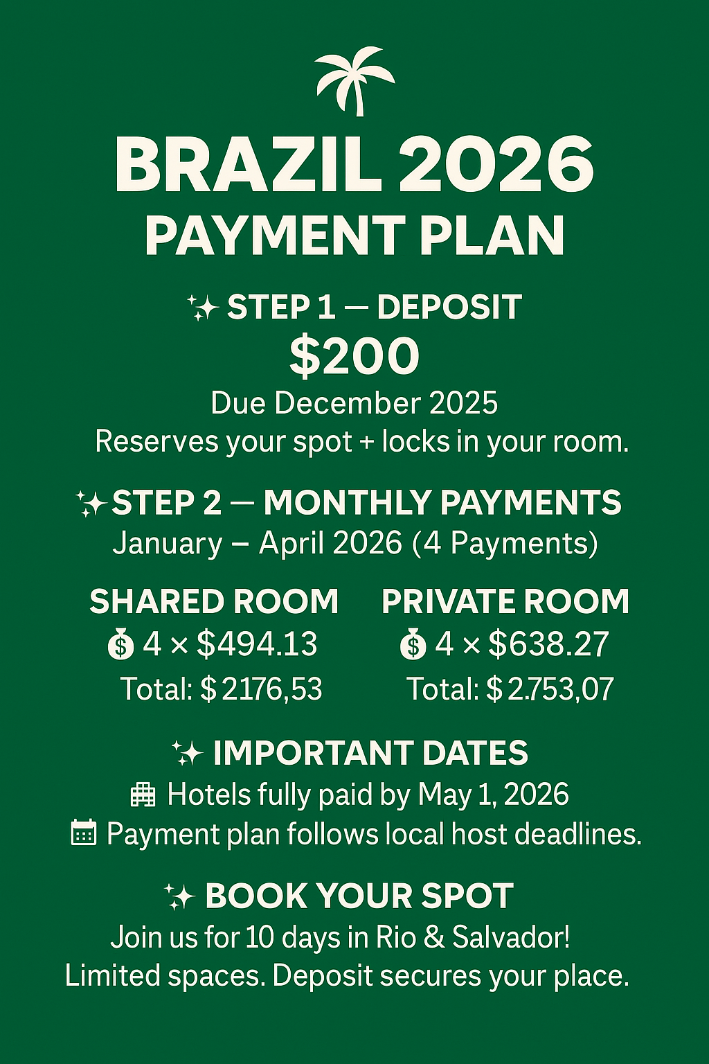 Investment & Payment Plan – Brazil 2026